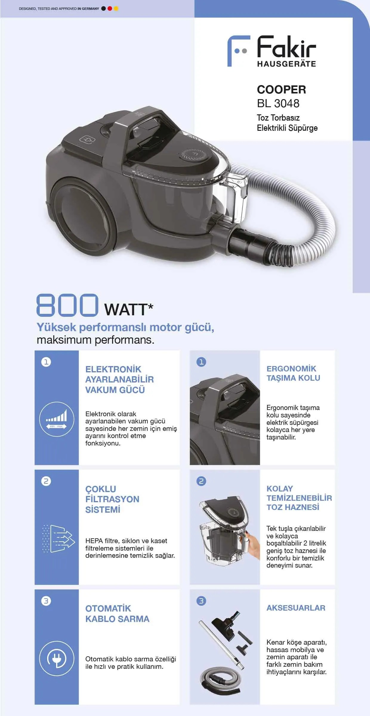 FAKIR COOPER ELEKTRİKLİ SÜPÜRGE BL 3048