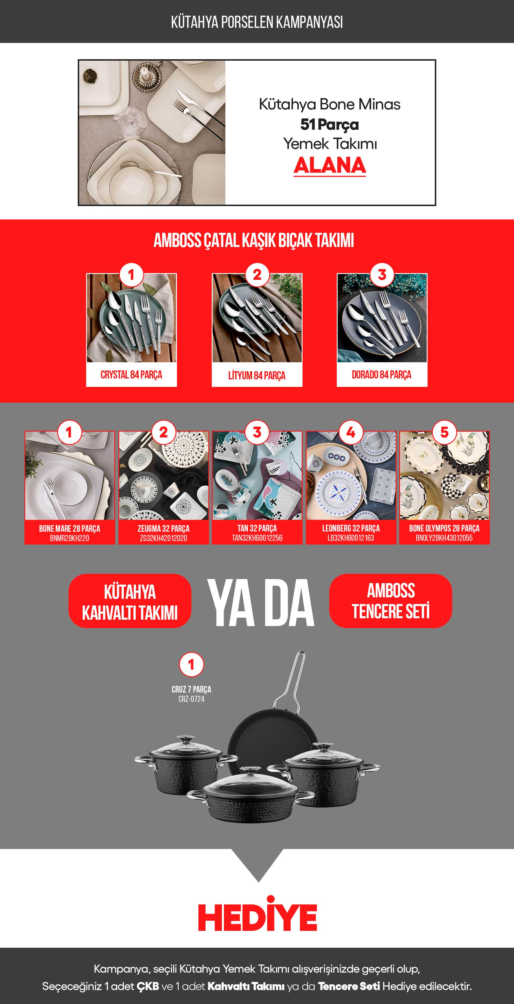 KÜTAHYA BONE MINAS 51 PARÇA YEMEK TAKIMI PLATİN FİLELİ BNMNS51YT220