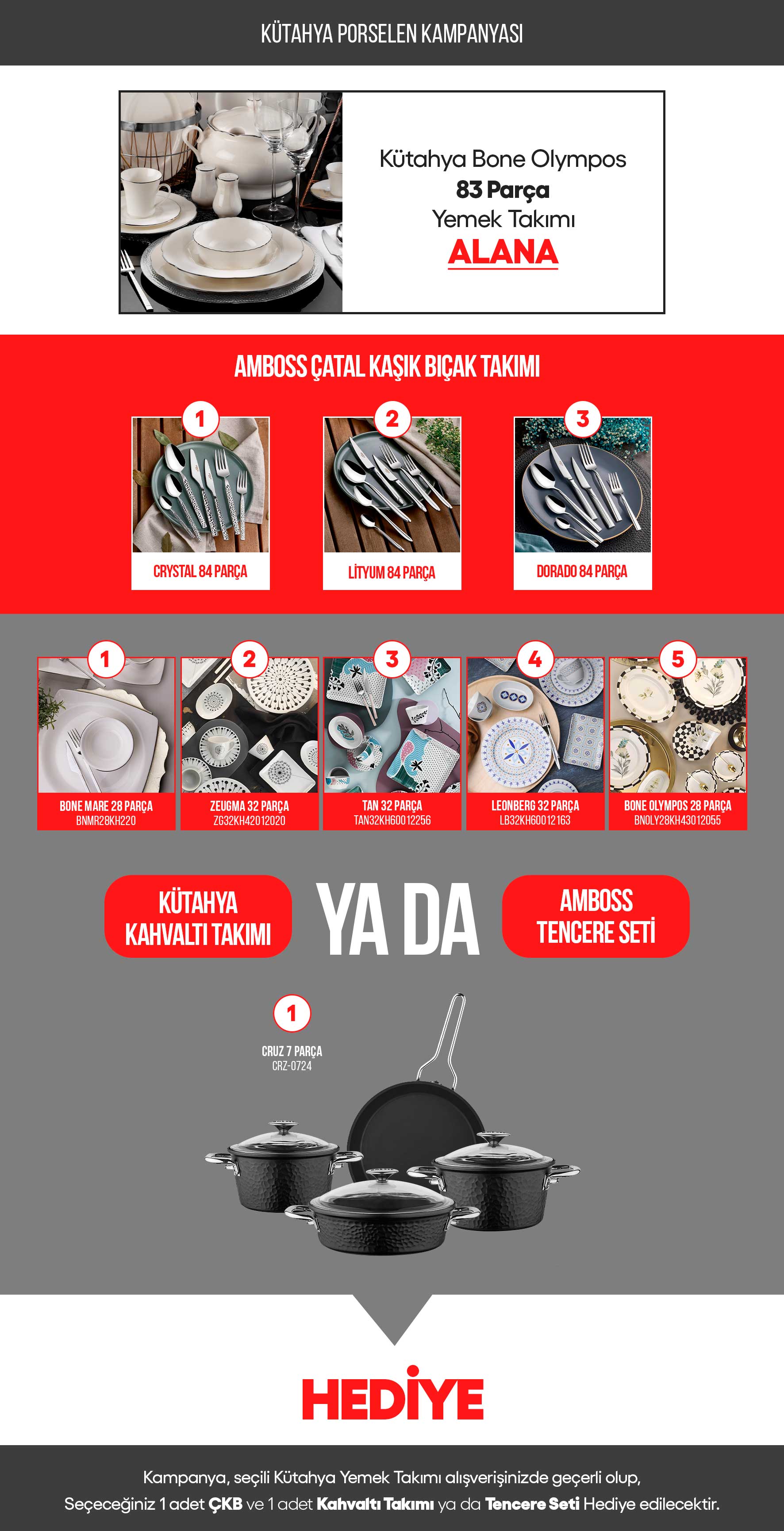 KÜTAHYA BONE OLYMPOS 83 PARÇA FİLE YEMEK TAKIMI BNOLY83YT220